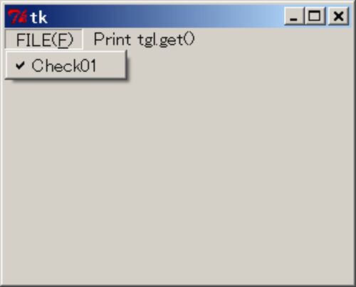 まず、チェックボタン。 # -*- coding: utf-8 -*- #[Print tgl.get()] を押すと Check01 の #状態(コンソールに 0 or 1) を表示する。 from Tkinter import * #コールバック関数を定義しておく。 def callback(): print tgl.get() #root ウィンドウを作る。 …